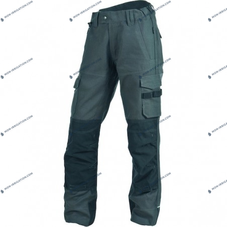 Pantalon de travail Activ'line résistant et renforcé. Pantalon dédié à une utilisation pour le BTP et le paysage Composé de multiples poches Disponible en coloris : Beige / noir ou gris / noir De tailles 36 à 60