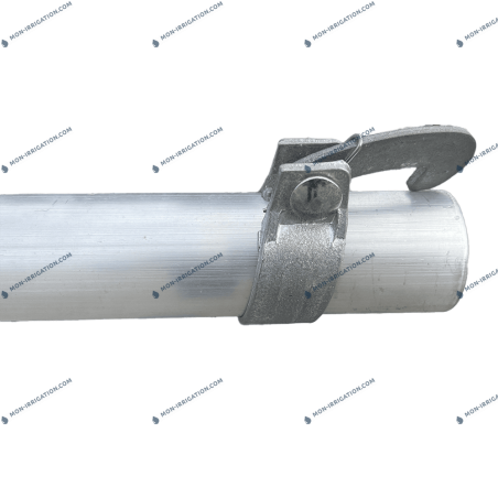 Collier aluminium avec crochet long équipé d'un ressort et d'une vis. Permet de raccord un raccord pour couverture intégrale mâle sur une conduite polyéthylène spéciale couverture intégrale de 6 ou 9 m Se place sur des conduites polyéthylène mâle-mâle livré avec frettes (sans colliers/crochets)...