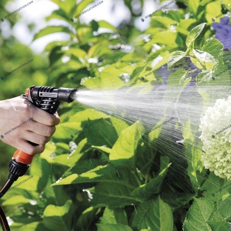 Kit complet pour arroser sur un balcon ou terrasse sans prendre de place. Livré avec raccord automatique rapide, 10m de tuyau 9-13mm et un pistolet multifonctions 4 jets. Peut-être fixé au mur ou déplacer via une poignée ergonomique.