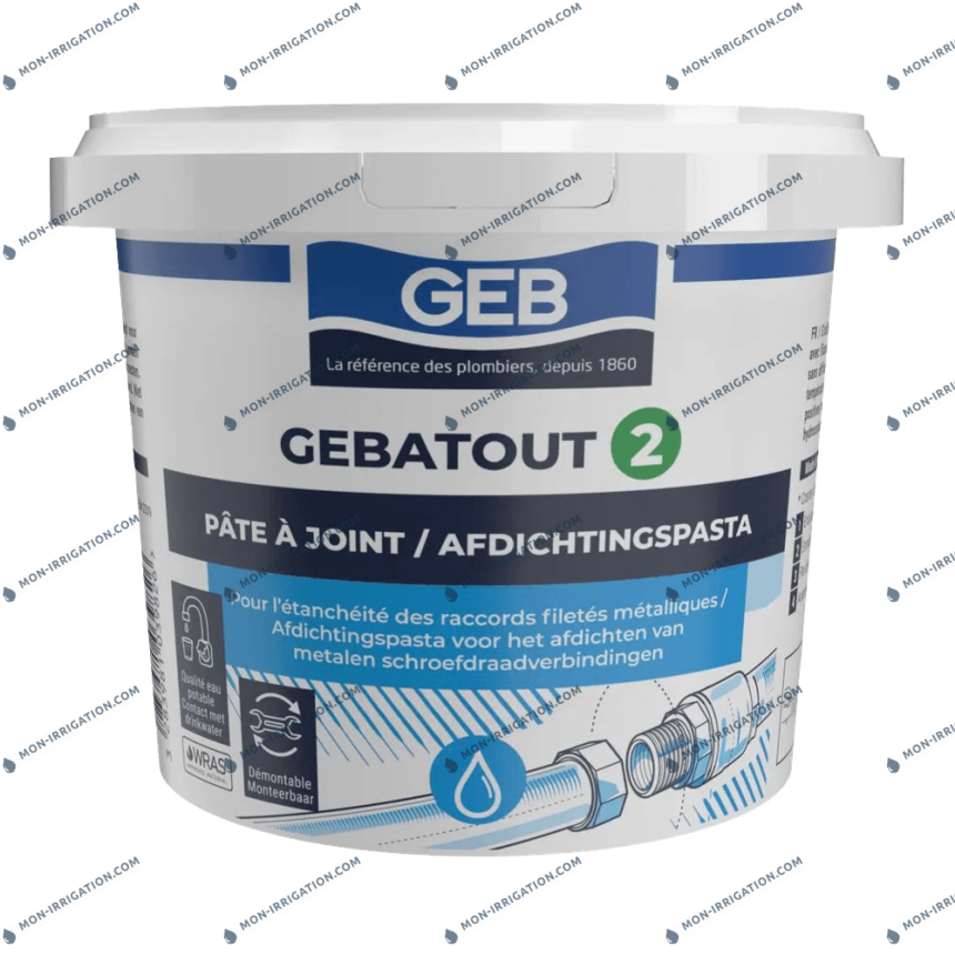 Le GEBATOUT 2 est une pâte à joint professionnelle non durcissante, spécialement conçue pour assurer l’étanchéité des raccords filetés métalliques dans les installations de plomberie et de chauffage. Utilisée en association avec de la filasse de lin, elle garantit une étanchéité fiable, durable et parfaitement adaptée aux exigences des réseaux sanitaires.