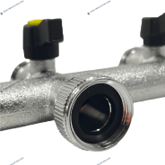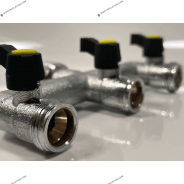 Robinet de dérivation (nourrice) en laiton 3 voies 3/4" avec des vannettes.