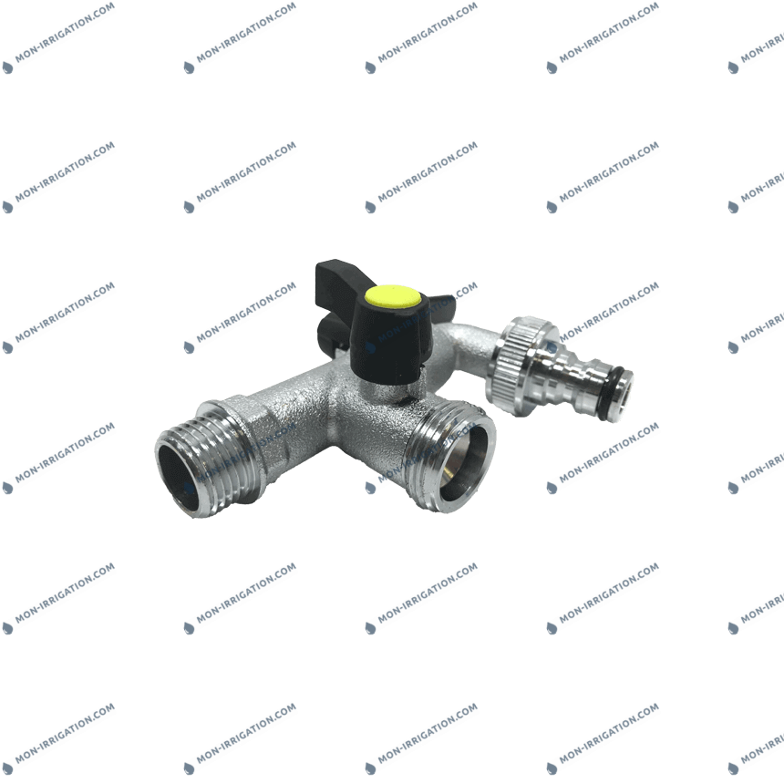 Robinet en laiton équipé deux sorties filetée 3/4" dont une sortie avec un nez de robinet en laiton.